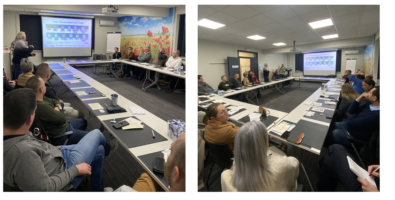 Onze opleidingsavond ‘ASBEST Wat en Hoe?’ is een succes geworden. De aanwezigen kregen uitleg over het asbestattest. Zo werd er o.a. uitgelegd wanneer een asbestattest nodig is, hoeveel attesten er nodig zijn en hoe de asbestdeskundige inventarisatie te werk gaat. Deze uitleg werd ons gegeven door onze asbestdeskundige inventarisatie Hilde Claes.